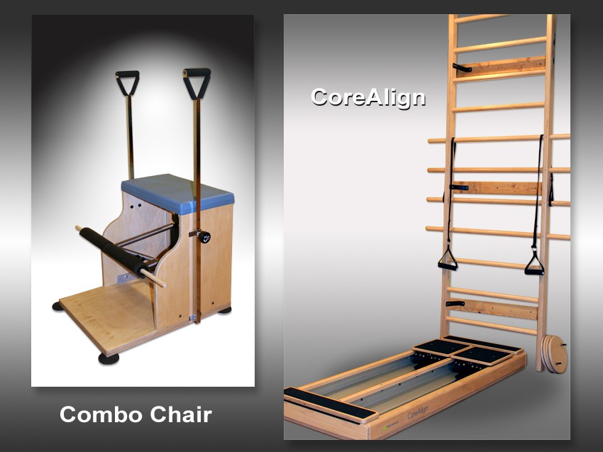 The CoreAlign, although not a traditional Pilates design, utilizes carts attached to resistance cords to stand on while having a secure ladder to hold on to, applying Pilates based movements in a primarily upright posture. The CoreAlign was developed by a Physical Therapist that saw the need to transition patients to successful reintegration of normal, healthy movement patterns after their injury focused rehabilitation.